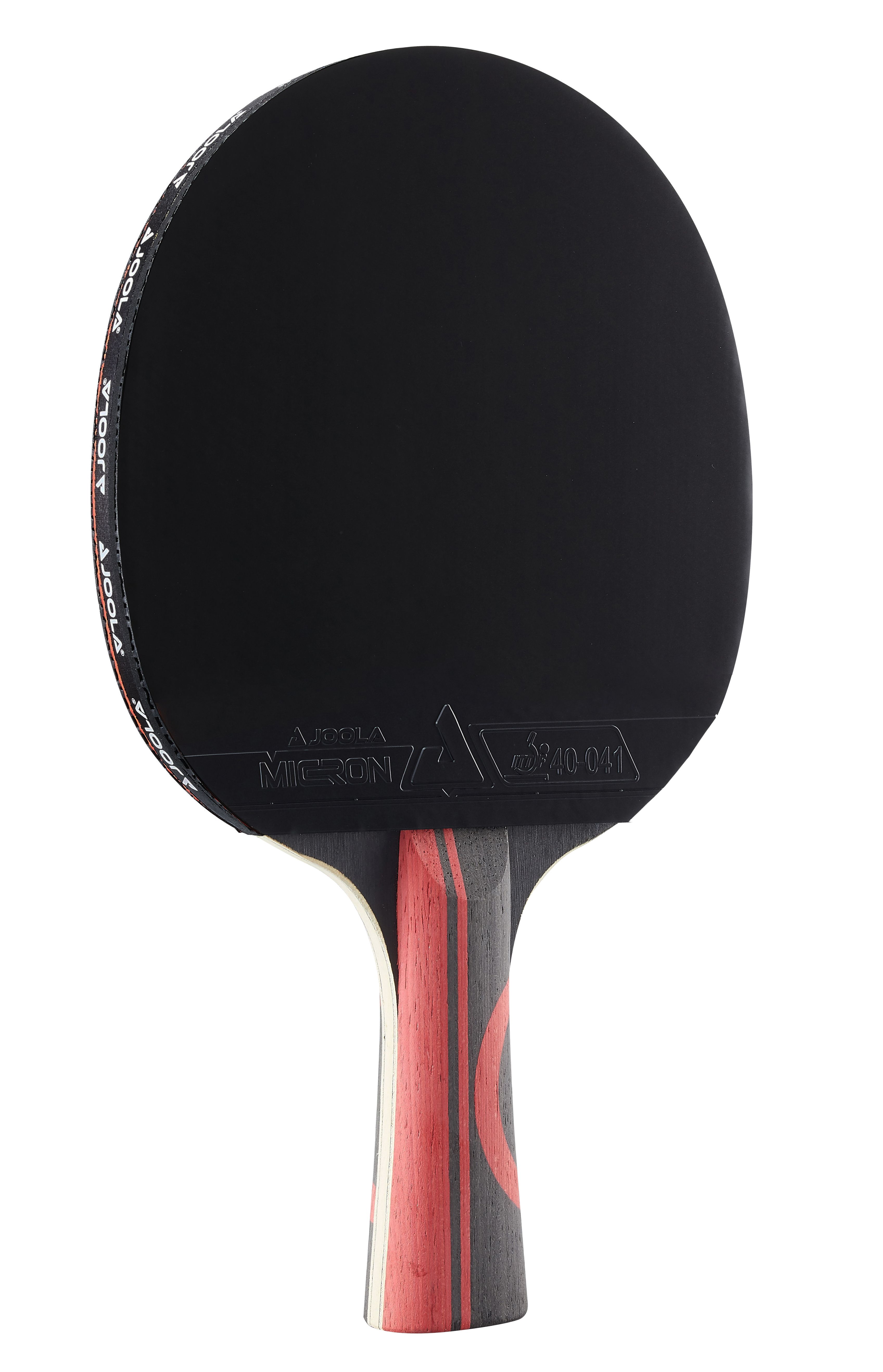 JOOLA Infinity Edge Racket - Red - vertical forehand black rubbers